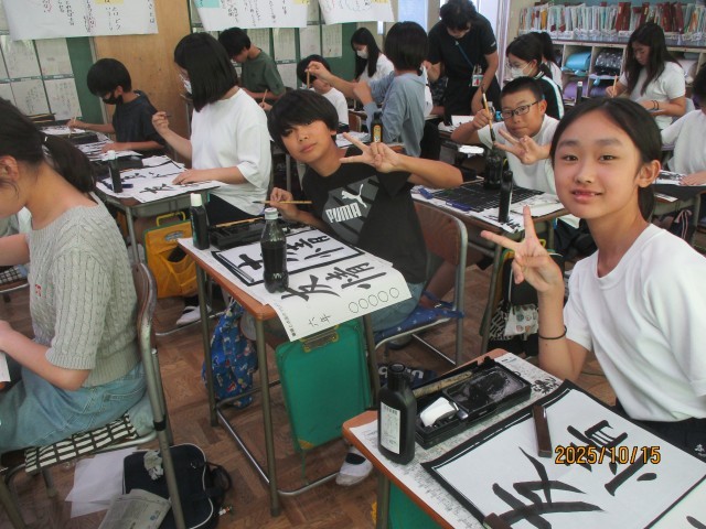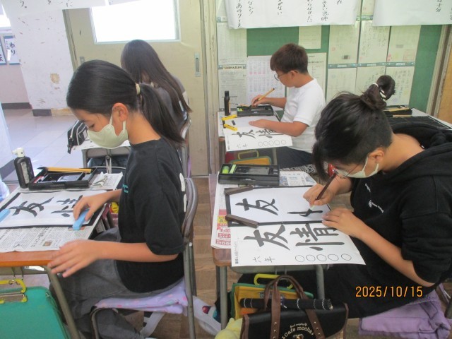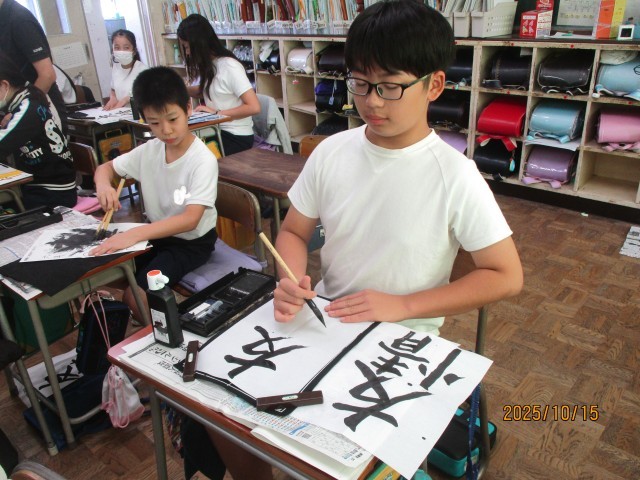 6年生は書写の学習で「友情」という文字に取り組んでいました。