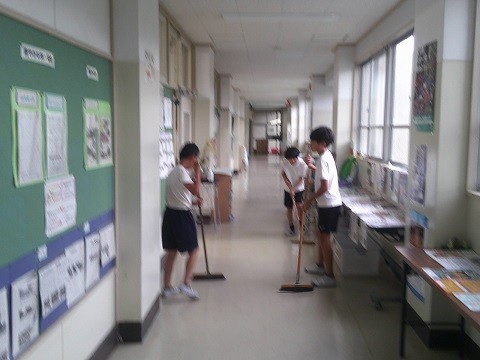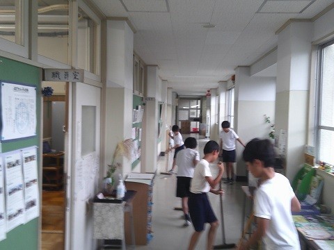 今日はさらに、廊下全体も掃き掃除をはじめていました。