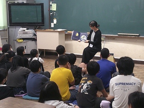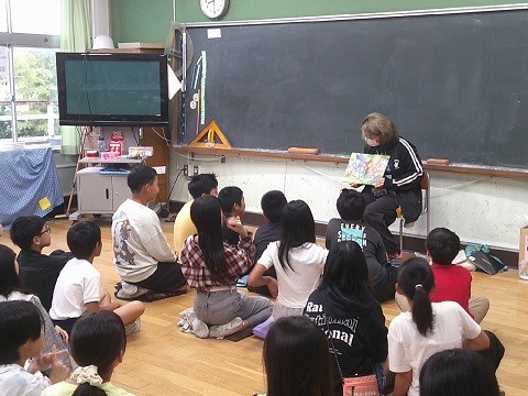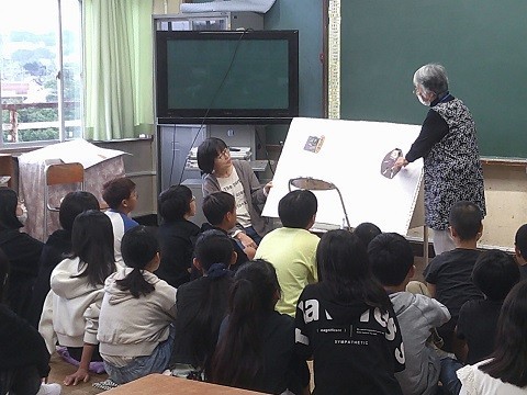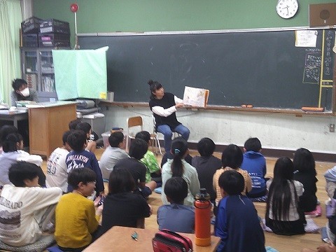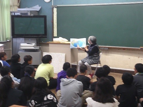 朝の時間に図書ボランティアさんによる朝読みがありました。