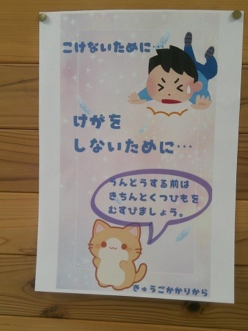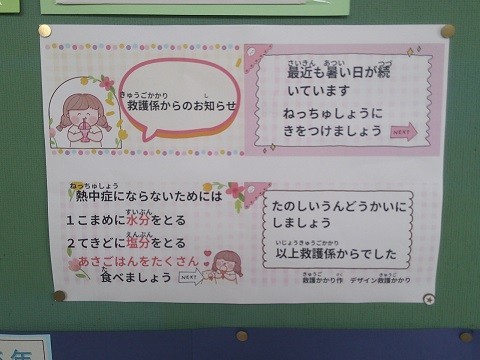 みんなにお知らせしたい内容をポスターにして掲示していた救護係。センスが輝いています!