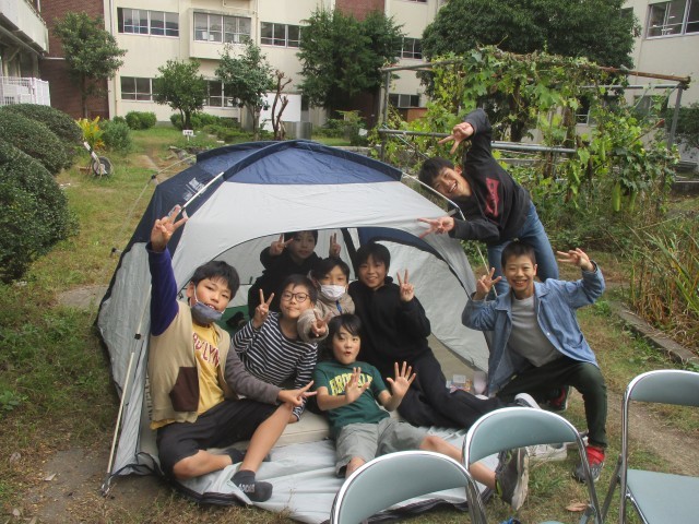 アウトドアクラブでは、テントを立てて、その中でおしゃべりをしたりカードゲームをしたりしながら、お湯を沸かしてスープを飲む、実にまったりとした時間を過ごしていました。