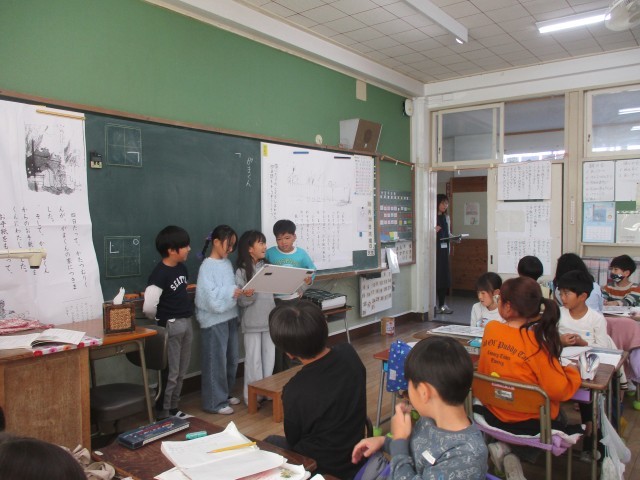 登場人物の気持ちの変化を読み取り、創作音読劇を行うことをめざしています。