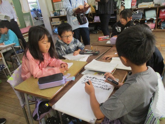 みんなの前でお話をすることが苦手と言っている子が多いようですが、まずはおとなりの子へ、さらにはグループの子たちへ。少しずつ自分の思いを表現する楽しさや喜びを味わってほしいと思います。
