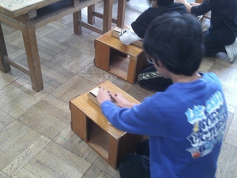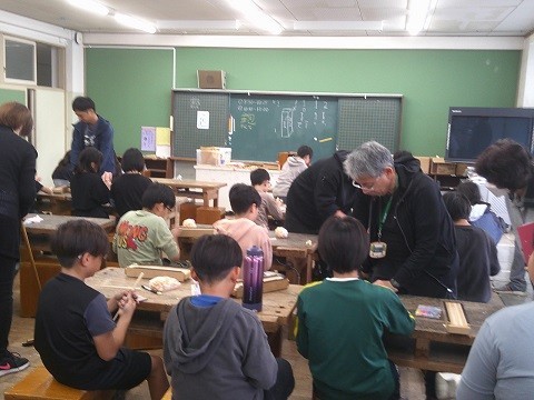 9月に行った木づかい事業「小田原の森林について考える」に続き、箸づくりに挑戦した5年生。
