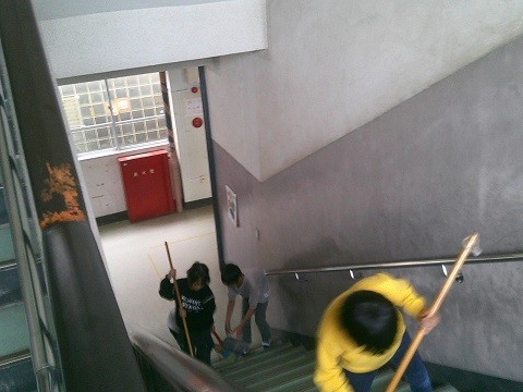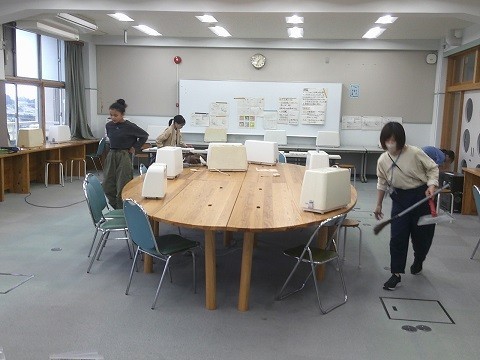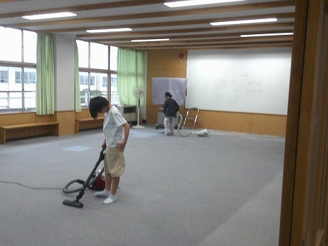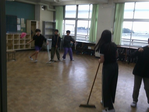 放送では、「今日の掃除は、自分たちの教室と廊下をやりましょう。」という声が流れました。