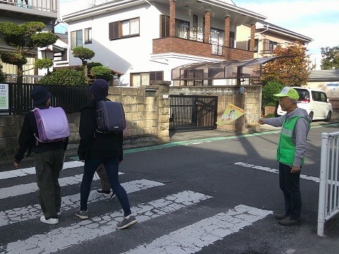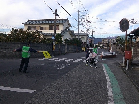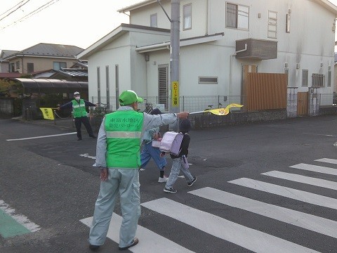 月に1~2回、地域の方々が子どもたちの下校時刻に合わせて学区の横断歩道など危険な箇所に立って、見守りをしてくださっています。