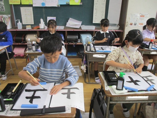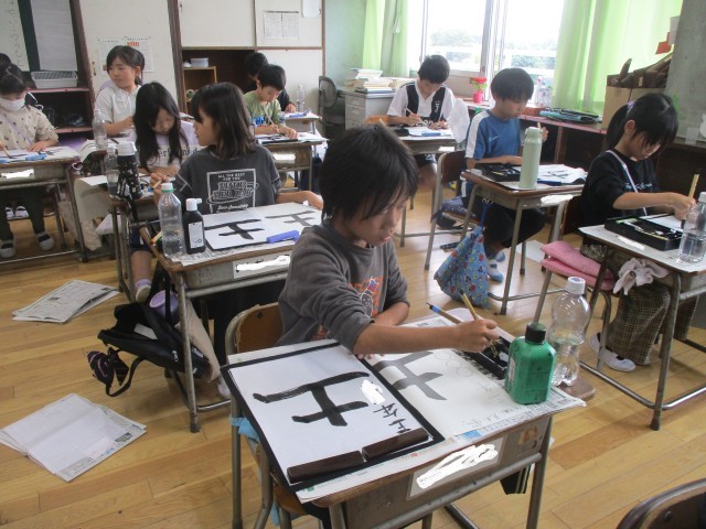 まだ2つめの文字ですが、子どもたちは一生懸命よい字になるようにと、書に向き合っています。