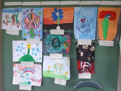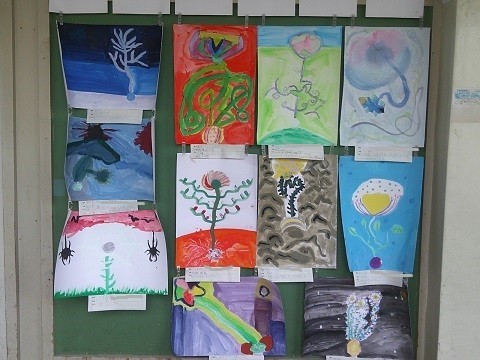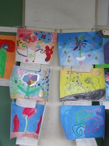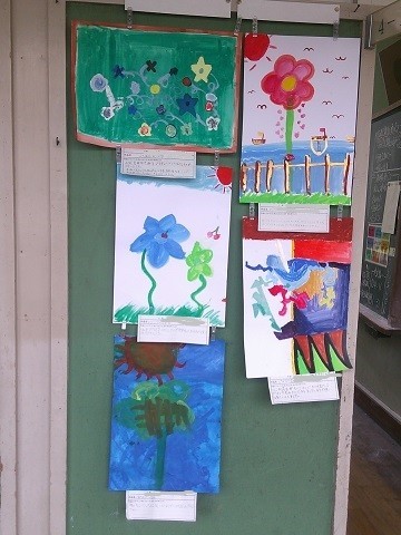 4年生は、種を作ったり、画用紙に色を塗り込んだりしながらそれぞれ自分の中のまぼろしの花を育て、つくりあげてきたようです。