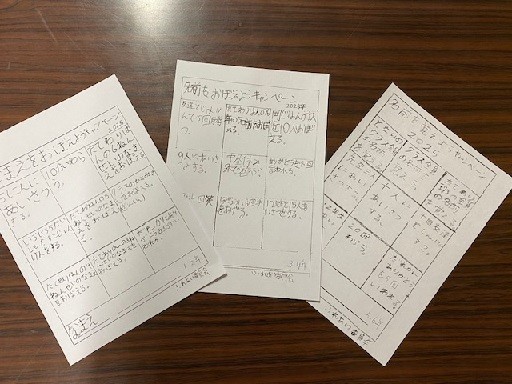 〇1・2年用、3・4年用、56年用のビンゴカードのマスに書かれた内容をクリアーしたらスタンプをもらえます。
