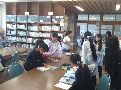図書委員会の児童が、各教室に行ってちらしとともに活動の説明をしていました。