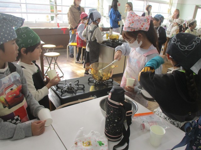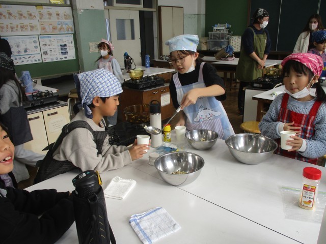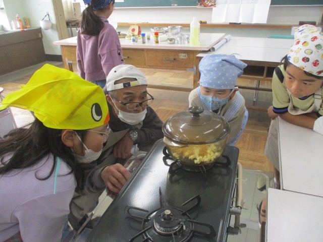 2年生は生活科の学習で育てたトウモロコシを9月に収穫し、ついに今日、ポップコーンを作りました。