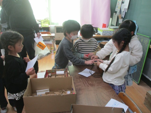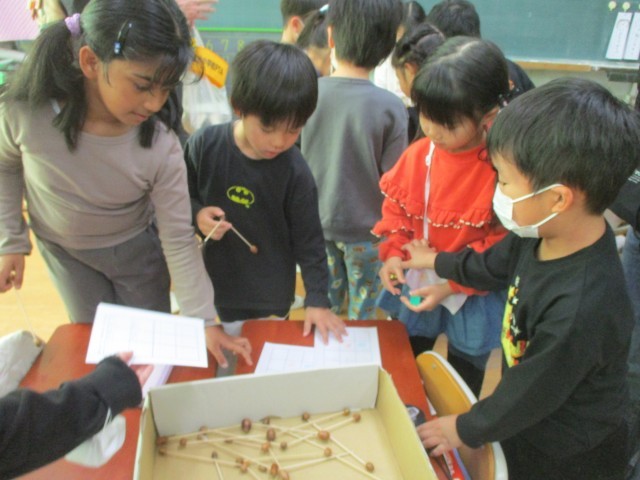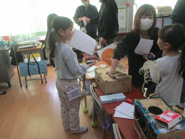 1年生は生活科や図工の学習でつくった、様々な遊びを紹介し、お客さんに楽しんでもらう活動をしていました。
