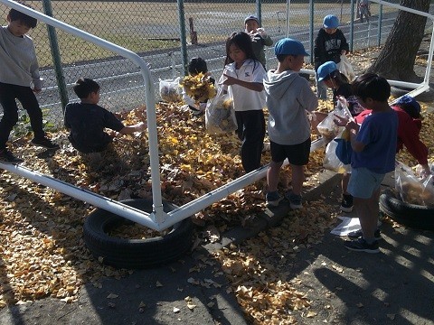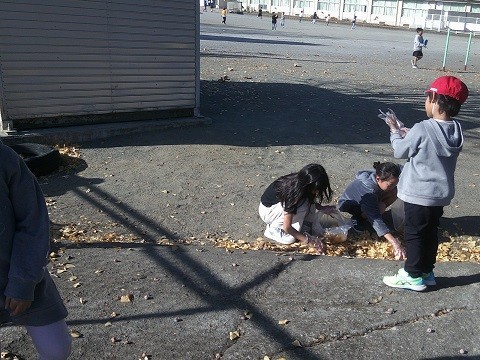 今日の昼休み、校庭の隅にたまっていた落ち葉を拾っていたら、2年生の子が「ぼくもやるよ!」と声をかけてくれました。