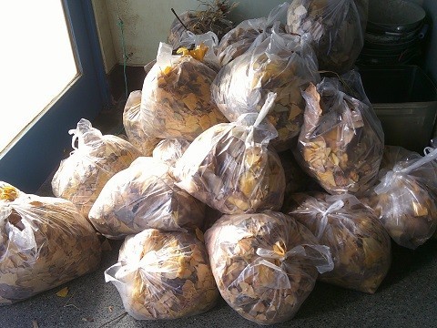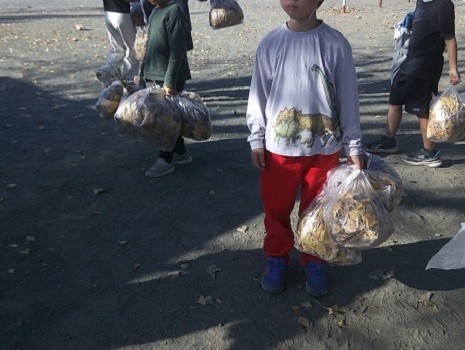 ひとりでは相当時間がかかるのに、みんなが力を貸してくれたおかげで、短時間でもたくさんの落ち葉を集めることができました。
