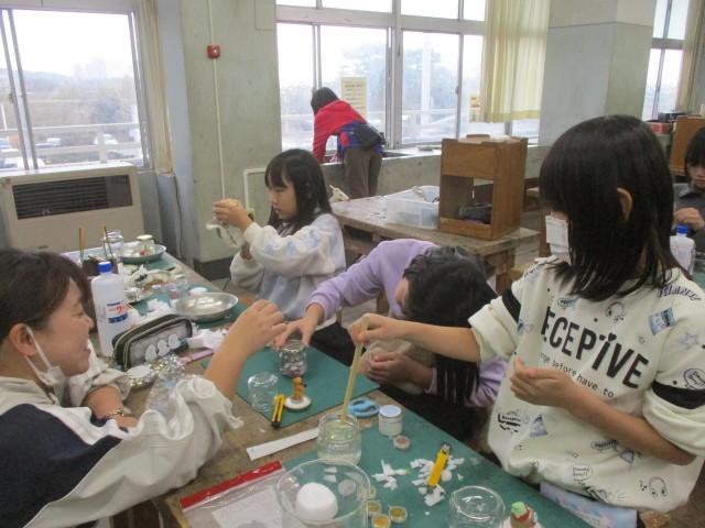 図工クラブでは、スノードームを作っていました。みんなこの日に向けてしっかりと準備をしてきたとのことで、とてもよい作品に仕上がったようです。