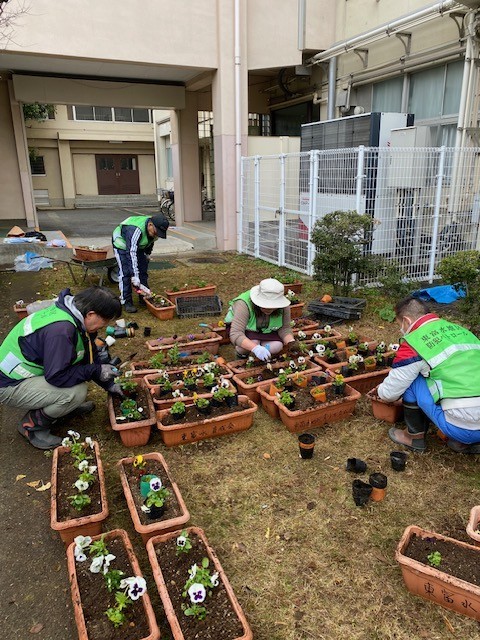 冬は彩りが寂しい季節ですが、パンジーやノースポールを植えて、子どもたちがほっと温かい気持ちになるように、小さな命を感じてもらえるように取り組んでくださっています。