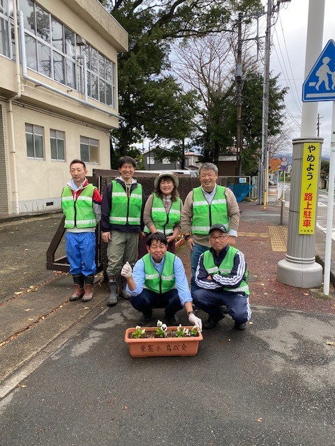 12月14日(日)、青少年育成会の方々が花植えをしてくださいました。今回は雨で午後日程になってしまったのにもかかわらずたくさんのプランターが並びました。