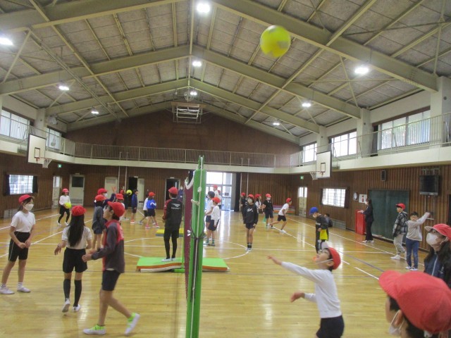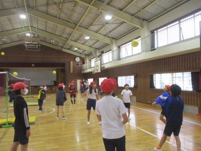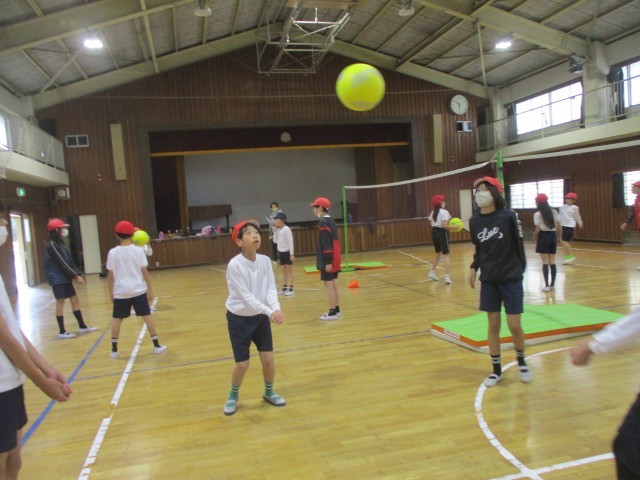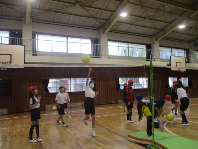 5年生は体育の学習で、バレーボールに取り組んでいました。
