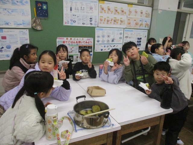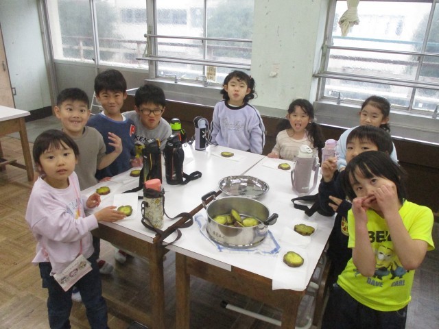 12月24日、1年生は生活科で育てたさつまいもをふかして食べました。