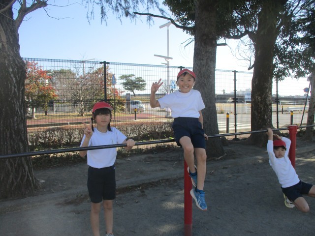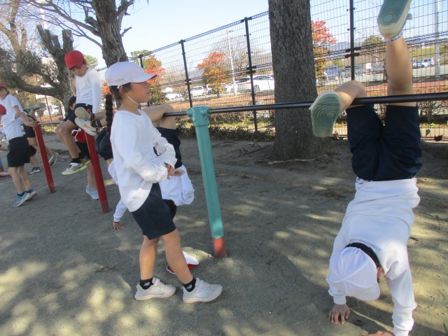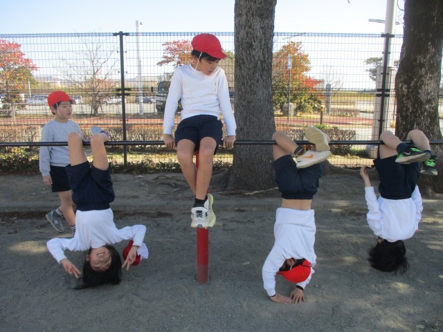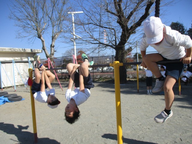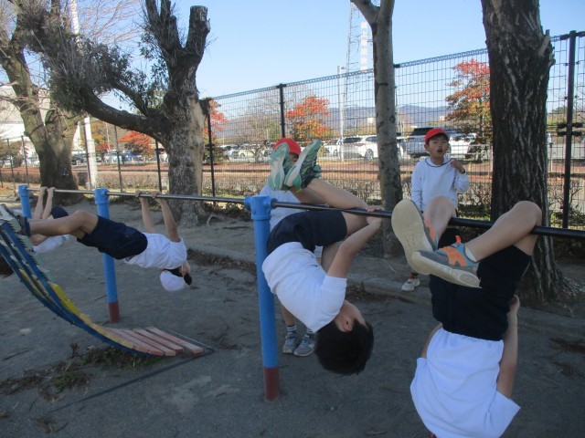 2年生は体育の学習で、てつぼうあそびを行っていました。