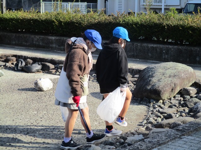 4年生は、小田原アリーナの裏手当たりの酒匂川の土手と金田公園にごみ拾いに行きました。総合の学習から考えが広がり、「東富水をきれいに!」という気持ちのもと、行いました。事前に子ども達から「ごみの落ちている場所はどこだろう?」と聞いてみると、金田公園が1番でした。川沿いの道も候補にあったので、ごみ拾いのコースに入れました。