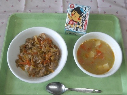 「今日からありがとう週間です。そして、今日から6年生ベストオブ献立が始まります。今日のキムタクご飯は、ごはん部門アンケートで3位になったものです。これから(今週だけではありません)の献立を楽しみにしていてください。」