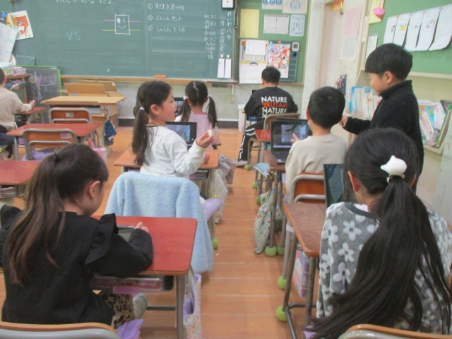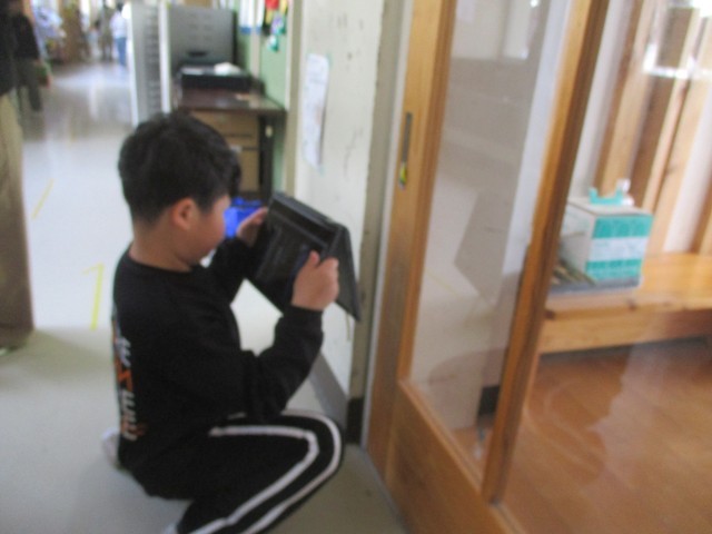 その後は、すきまちゃんがすきだろうなという場所を探し、学習用端末を手に校内をめぐります。