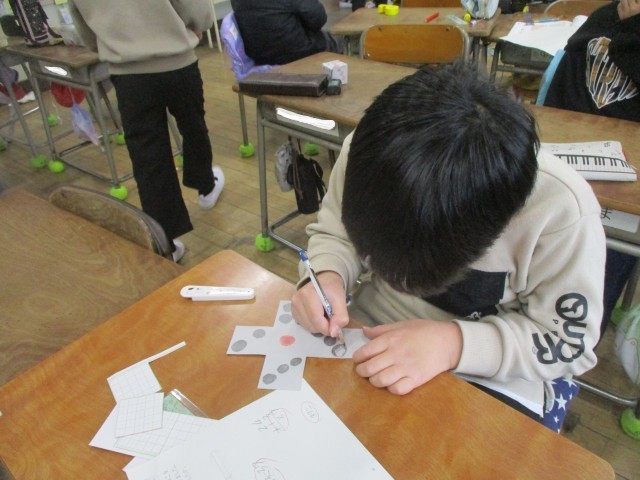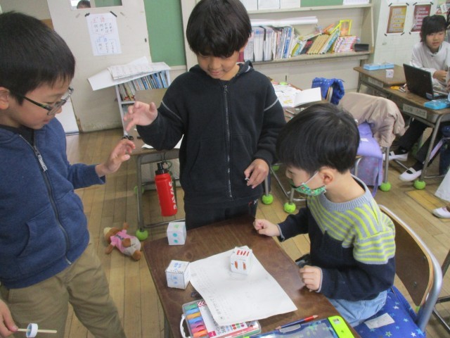 2年生は算数の学習で、さいころを作っていました。