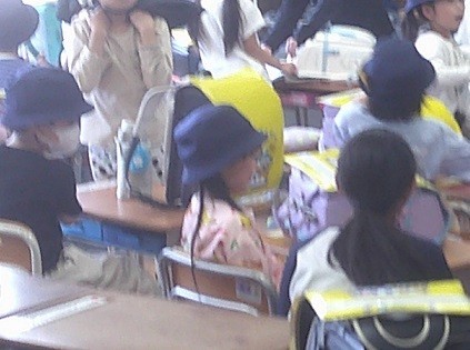 「机に教科書しまえた?」