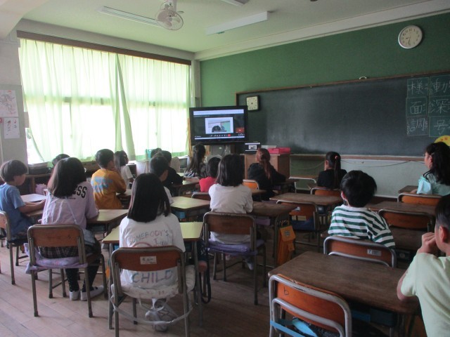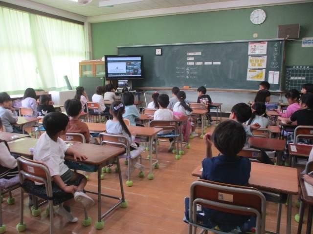 学校のいろいろな場所の写真を見ながら、避難の仕方を学びました。