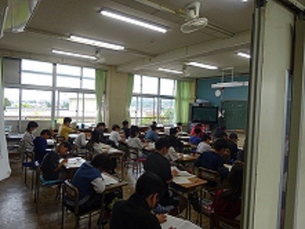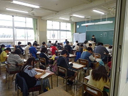 マークシートの番号を塗りつぶしたり、冊子の問題に挑戦したりするなど、日頃とは違う形式の問題に緊張感も漂っている教室でした。