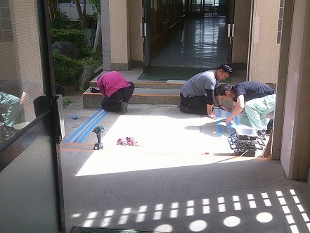 そこで、小田原市の方に来ていただき、見えにくい段差部分にペンキを塗ったりテープをはったりして環境整備をすすめています。