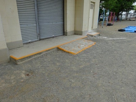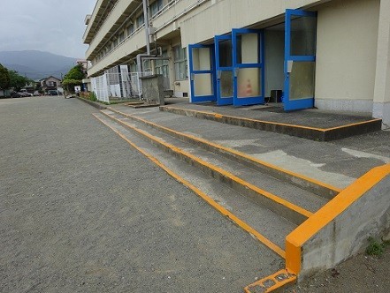 学校にはまだまだ段差が多くあり、つまずいたりすべったりする可能性があります。
