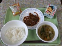 今日は、シナモンロールが出ていますね。シナモンロールについているシナモンは、何からできているか知っていますか。シナモンは、スリランカ産のセイロンニッケイの樹皮をかわかしたものです。シナモンは、やつはしやいろいろな食べ物に使われています。手がよごれて少し食べにくいけれど、残さず食べてみてください。