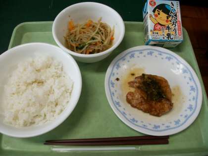 揚げ鶏のねぎソースかけ・野菜のおかかいため・ご飯・牛乳