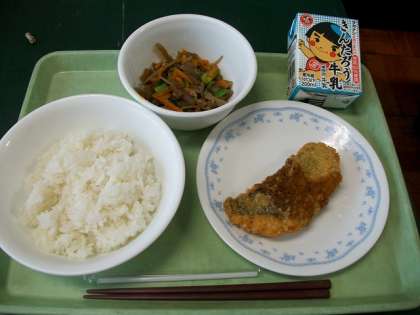 鰆のフライ・こんにゃくのキンピラ・ご飯・牛乳