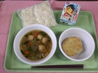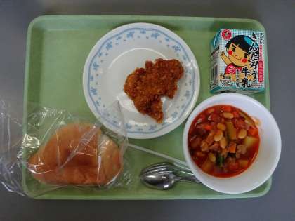 米粉ロールパン・クリスピーチキン・ポークビーンズ・牛乳