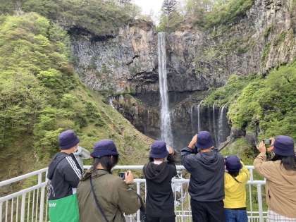 日本三名瀑の一つ華厳の滝には、岩盤を貫いたエレベーターがあり、約100mぐらい下ると目の前に滝を見ることができました。
