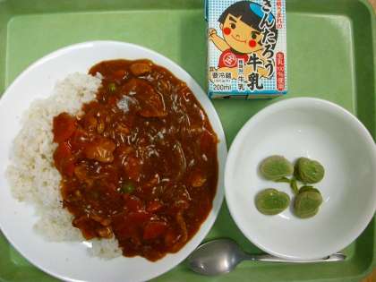 牛乳 ハヤシライス(麦ごはん) 茹でそら豆