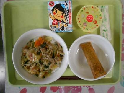 4月11日(木)中華丼・牛乳・揚げ春巻き・デザート