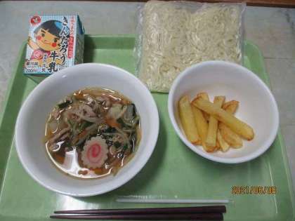タンメン・フライドポテト・牛乳