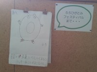 横 1メートル 縦1.5メートルほどの大きな大きなひまわりの絵が、わかたけ2組に飾られています。