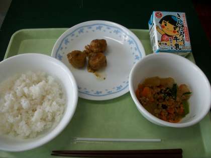 肉団子の甘酢あんかけ・大根のピリ辛そぼろ煮・ご飯・牛乳