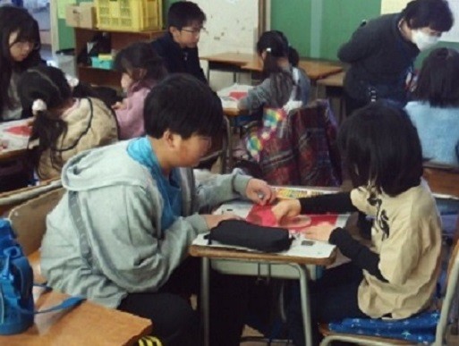 その後も、お礼に1年生の似顔絵を描いてあげたり、一緒になって折り紙をしたりして過ごしました。初めは緊張した表情の1年生も帰るときには、笑顔で楽しそうな表情になっていました。