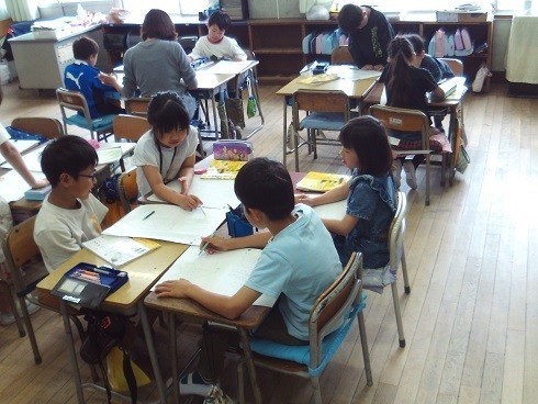 グループになって、どんなふうに読むと思いが伝わるか、話し合っていました。