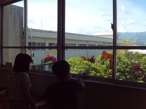 どの窓も素敵な作品で彩られました。(写真は、制作の途中です)