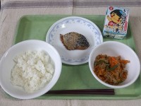 <こんだて> ・牛乳 ・ごはん ・さわらのごま照り焼き ・にんじんしりしり 給...