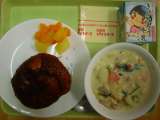 2月23日(火) 今日の給食のメニュー 牛乳 ワンタン麺(ホットラーメン) 枝...