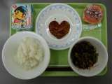 ハートハンバーグ・ひじきの五目煮・ごはん・ココアムース 給食委員会の子どもた...