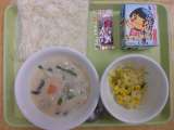 5月9日(火) 今日の給食のメニュー 牛乳 鮭のクリームソース(ソフト麺) 温...